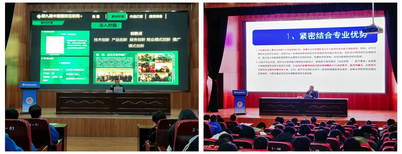 《脂争朝夕》团队指导教师席满意以“团结、提升和创新”为主线给同学们讲解了“学创研用产”一体化双创人才如何培养,并以“脂争朝夕”项目为例重点讲解“如何选题、素材的积累、作品打磨和路演准备”;《表活精粹新技术》团队指导教师王刚以“创新创业大赛项目选题与专业的关系”为题讲解了双创与专业的关系,并提出“创新创业大赛选题”的四个要点,重点讲解“如何将这四个要点在项目中进行体现”,最后两个项目的国赛获奖选手进行项目路演。